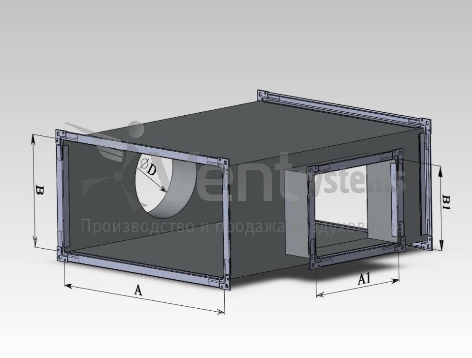 Крестовина прямоугольного сечения с прямоугольной и круглой врезкой