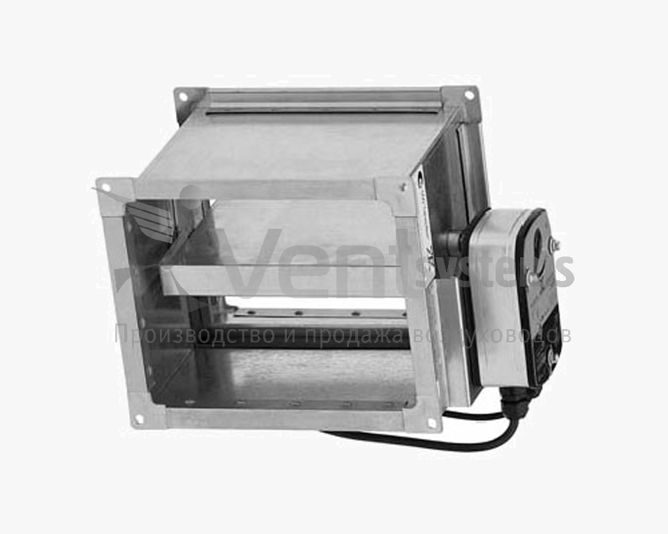 Корпус клапана исполнен из прочной оцинкованной стали. Заслонка дополнительно обрабатывается специальным огнестойким материалом. Изделие оснащено электромеханическим приводом. Данное изделие предназначено для установки в прямоугольных вентиляционных каналах.